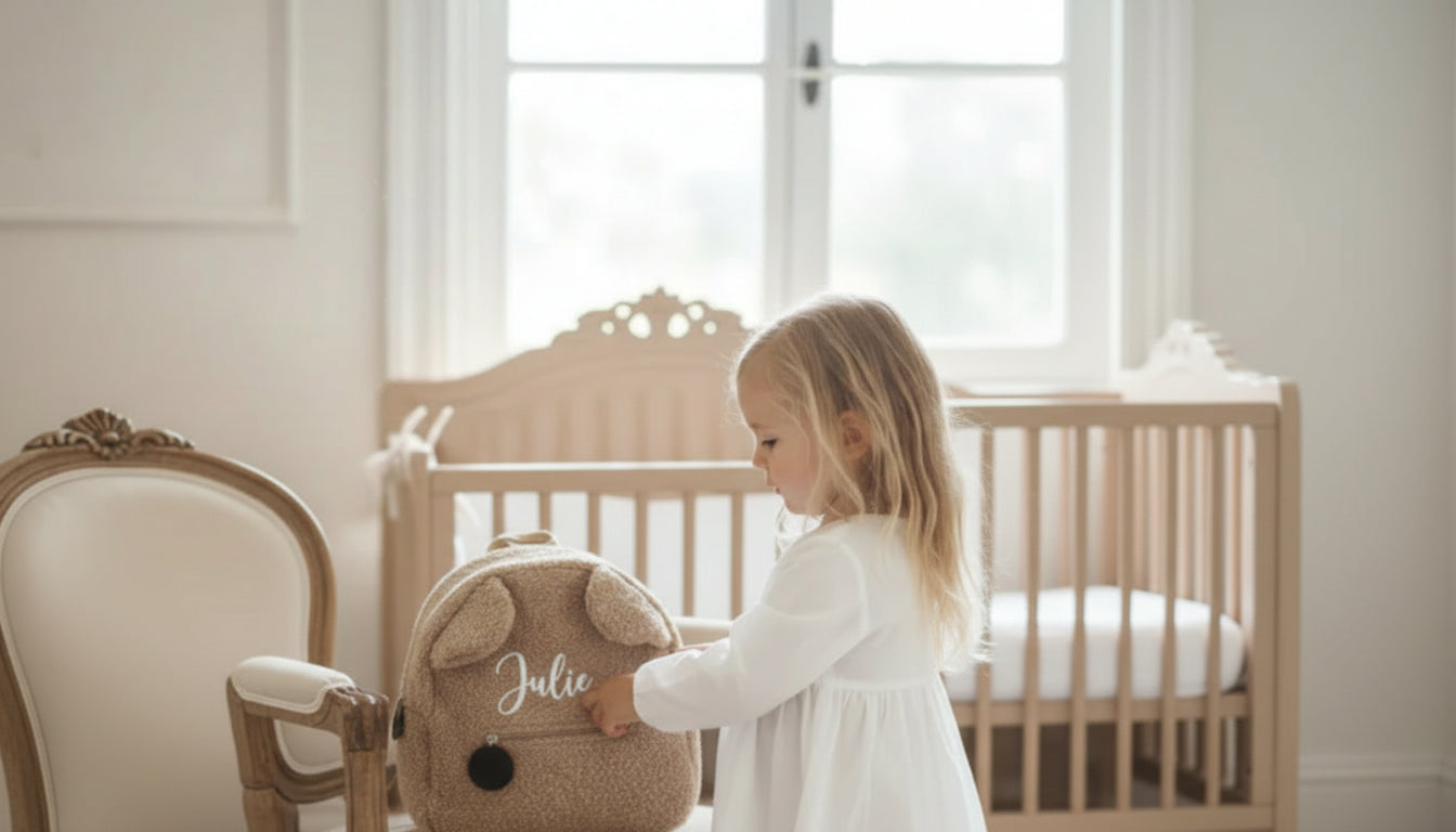 Un sac en forme d’ours imaginé pour suivre votre enfant partout : prénom brodé, couleurs au choix, douceur et praticité au quotidien.